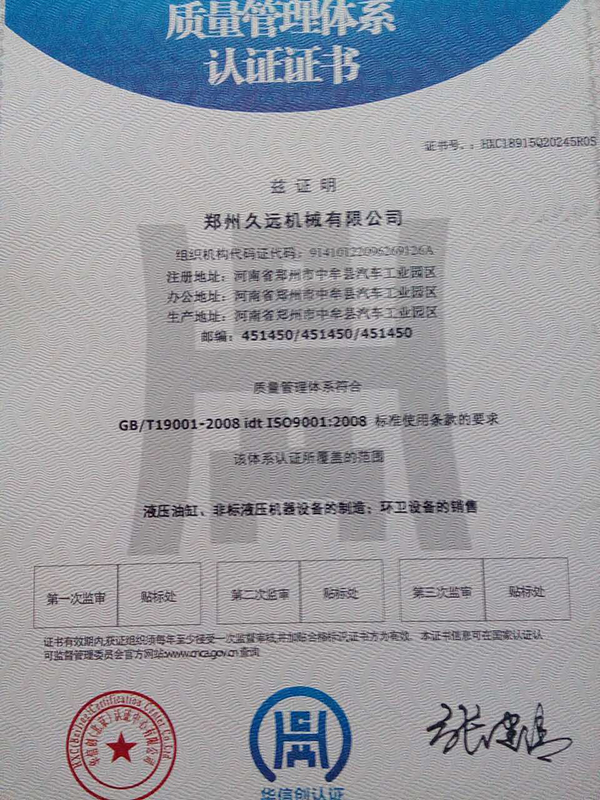 質量管理體系認證證書