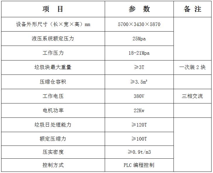 5)采用1條主壓縮油缸與2條副壓縮油缸并聯(lián)而成的壓縮油缸。可提高壓縮效率,降低設(shè)備高度,節(jié)約空間。