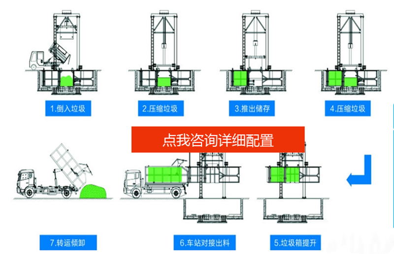 設(shè)有垃圾儲(chǔ)存箱,適合集裝箱式散裝垃圾運(yùn)輸車卸料,減少運(yùn)輸費(fèi)用。