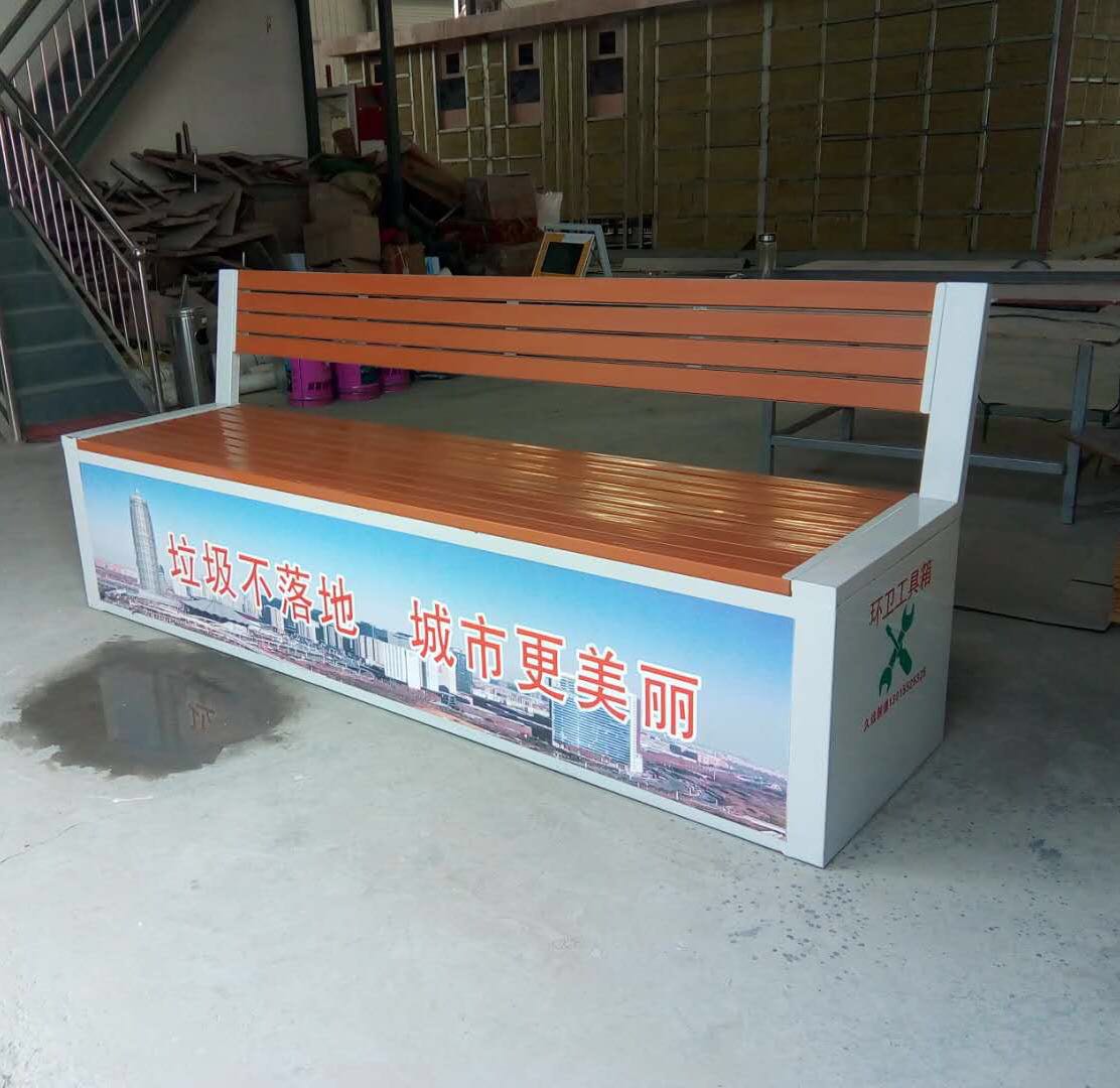環(huán)衛(wèi)工具箱:也叫保潔員工具箱,環(huán)衛(wèi)工具椅,保潔員休息座椅,市政保潔箱等。工具箱常用尺寸為:長2400*寬500*高550mm,也可以做成2米,2.4米,2.7米等,寬度和高度也可以定做,滿足不同客戶、不同場所的使用要求。